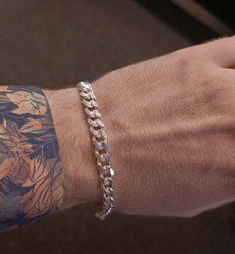 Tento elegantní náramek je vyroben z kvalitního stříbra (925/1000) z plného stříbrného drátu. Díky délce 22 cm se perfektně hodí pro muže. Skvělá volba pro každodenní outfit i slavnostní příležitost.